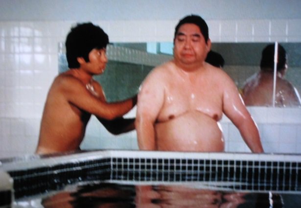 Meiko kaji (梶芽衣子) and asei kobayashi (小林亜星) in a press photo for kantaro terauchi family (寺内貫太郎一家), 1974.